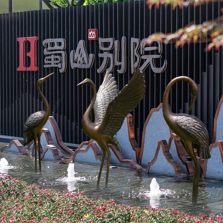 在企业园区摆放仙鹤雕塑有着多方面的作用。首先,仙鹤雕塑具有较高的艺术价值,能够提升企业园区的整体形象和品味。一个设计精美、制作精良的仙鹤雕塑可以成为园区的标志性景观,吸引人们的目光,给来访者留下深刻的印象。这对于提升企业的知名度和美誉度有着积极的作用。其次,仙鹤在中国文化中象征着吉祥、长寿和高贵。将仙鹤雕塑摆放在企业园区,可以为企业带来好运和福气,寓意着企业的长久发展和繁荣昌盛。同时,仙鹤的高雅气质也可以激励企业员工追求卓越、不断进取。从环境营造方面来看,仙鹤雕塑可以为企业园区增添一份自然和宁静的氛围。在繁忙的工作之余,员工们可以欣赏仙鹤雕塑的美丽,放松心情,缓解工作压力。此外,仙鹤雕塑还可以成为企业员工拍照打卡的热门地点,增强员工之间的交流和互动,提升企业的凝聚力。然而,在摆放仙鹤雕塑时,企业也需要考虑到园区的整体规划和风格。要确保雕塑与周围的建筑和景观相协调,不显得突兀。同时,还要注意雕塑的维护和保养,定期进行清洁和检查,确保雕塑的美观和安全。仙鹤雕塑摆放在医院有一定的合理性和积极意义。从心理层面来看,医院是一个充满紧张和焦虑氛围的地方,患者和家属往往承受着巨大的心理压力。仙鹤雕塑的出现可以为医院增添一份宁静和祥和的气息,缓解人们的紧张情绪。