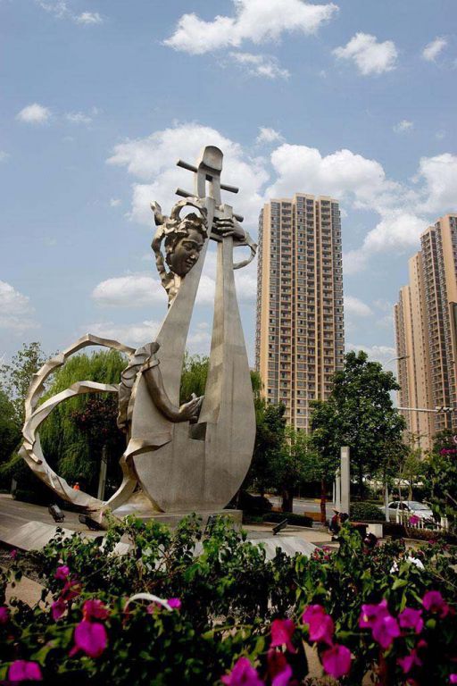 不锈钢琵琶雕塑的制作是一个复杂而精细的过程。首先,艺术家需要进行设计构思,根据自己的创意和想法绘制出详细的设计草图。在这个阶段,艺术家会考虑琵琶的形态、比例、线条以及整体的艺术风格。