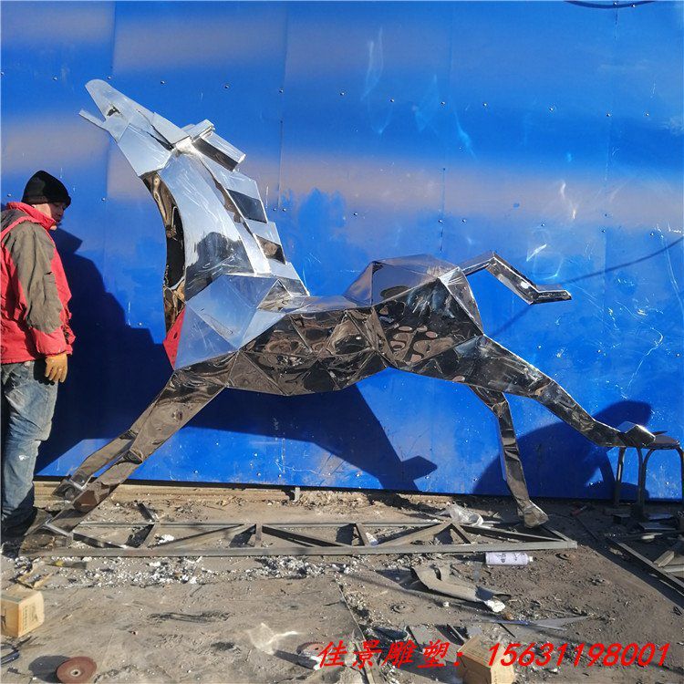 不锈钢材质为马雕塑的寓意表达增添了独特的魅力。首先,不锈钢具有坚固耐用的特性,这使得马雕塑能够长久保存。它象征着马所代表的精神寓意能够永恒不变,如马的力量、勇气、自由等精神,如同不锈钢雕塑一般,历经岁月的洗礼而不褪色。这种持久性让马雕塑成为一种传承精神的载体,无论是放置在城市的街头巷尾,还是私人的庭院之中,它都能持续地向人们传达其蕴含的深刻寓意。其次,不锈钢的光泽度和现代感很强。马雕塑在不锈钢材质的衬托下,显得更加熠熠生辉,充满时尚气息。这使得马雕塑所代表的传统寓意与现代社会相融合。例如,马象征的速度与自由,在不锈钢材质的加持下,更能体现出在现代快节奏、高科技的生活中,人们对自由和高效的追求。它让古老的马文化在现代社会中焕发出新的活力,吸引着不同年龄段的人们去理解和感受马雕塑背后的寓意。再者,不锈钢材质的可塑性很高,可以制作出各种精细且富有创意的马雕塑造型。无论是写实风格的骏马,还是抽象变形的艺术化马的形象,不锈钢都能完美呈现。这种丰富的造型选择,进一步拓展了马雕塑寓意的表达空间。比如抽象的马雕塑,可能通过独特的线条和形态,更深入地挖掘马的内在精神,传达出超越具象形态的哲学思考和情感内涵,让人们从不同角度去解读马雕塑所蕴含的寓意。