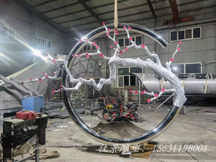 不锈钢梅花树圆环雕塑可用材质不仅局限于304,还可以是201等,所使用的工艺也不只是喷漆,还可以是喷镀、烤漆、拉丝、镜面等,尺寸和适用场所也非固定不变,具体请电话咨询:15631198001