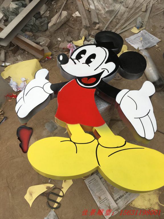 不锈钢卡通米老鼠雕塑可用材质不仅局限于304,还可以是201等,所使用的工艺也不只是拉丝,还可以是喷镀、烤漆、喷漆、镜面等,尺寸和适用场所也非固定不变,具体请电话咨询15631198001。
