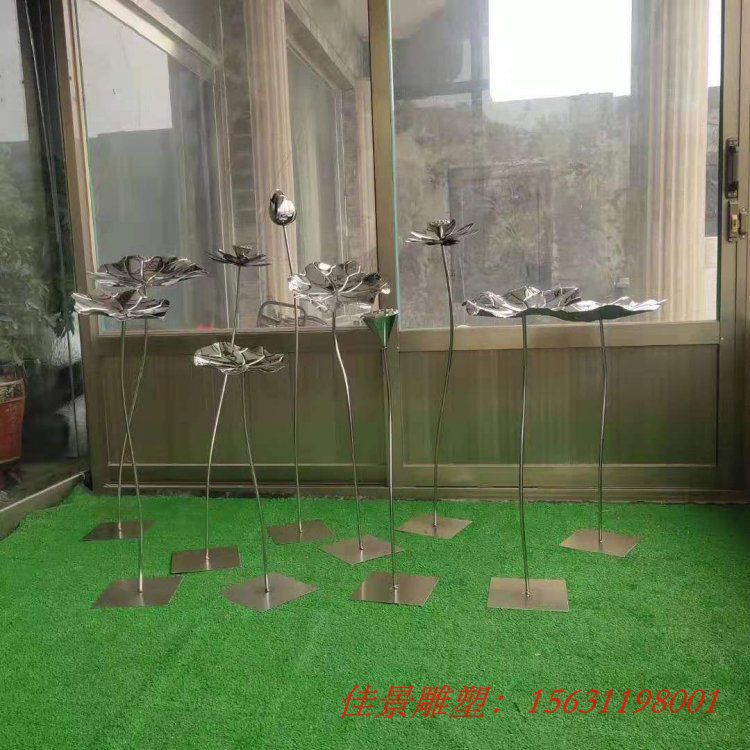 景区公园不锈钢荷花荷叶雕塑可用材质不仅局限于304,还可以是201等,所使用的工艺也不只是镜面,还可以是喷镀、烤漆、喷漆、拉丝等,尺寸和适用场所也非固定不变,具体请电话咨询15631198001。