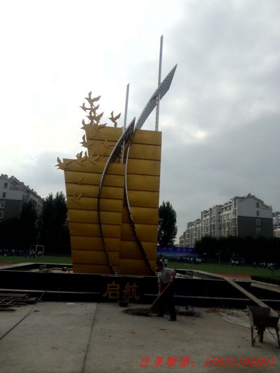 不锈钢启航校园抽象雕塑可用材质不仅局限于不锈钢,还可以是石雕、铜雕等,所使用的工艺也不只是镜面,还可以是喷镀、烤漆、喷漆、拉丝等,尺寸和适用场所也非固定不变,具体请电话咨询15631198001。