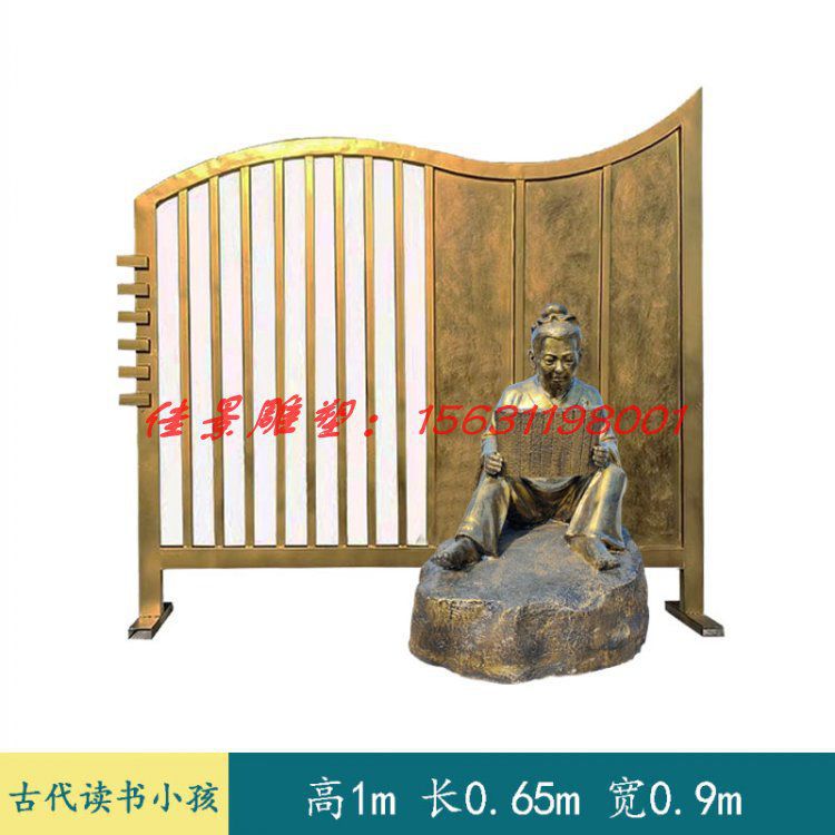 校园读竹简的儿童铜雕可用材质不仅局限于黄铜,还可以是青铜、紫铜等,所使用的工艺也不只是铸造,还可以是着色、鎏金、贴金、镀金等,尺寸和适用场所也非固定不变,具体请电话咨询。15631198001