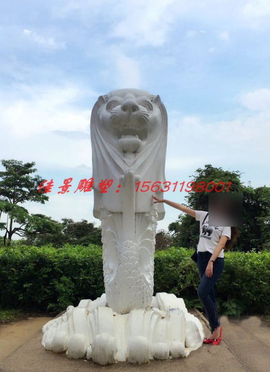 公园汉白玉鱼尾狮雕塑可用材质不仅局限于汉白玉石雕,还可以是大理石、砂岩、晚霞红、青石等,尺寸和适用场所也非固定不变,具体请电话咨询15631198001。