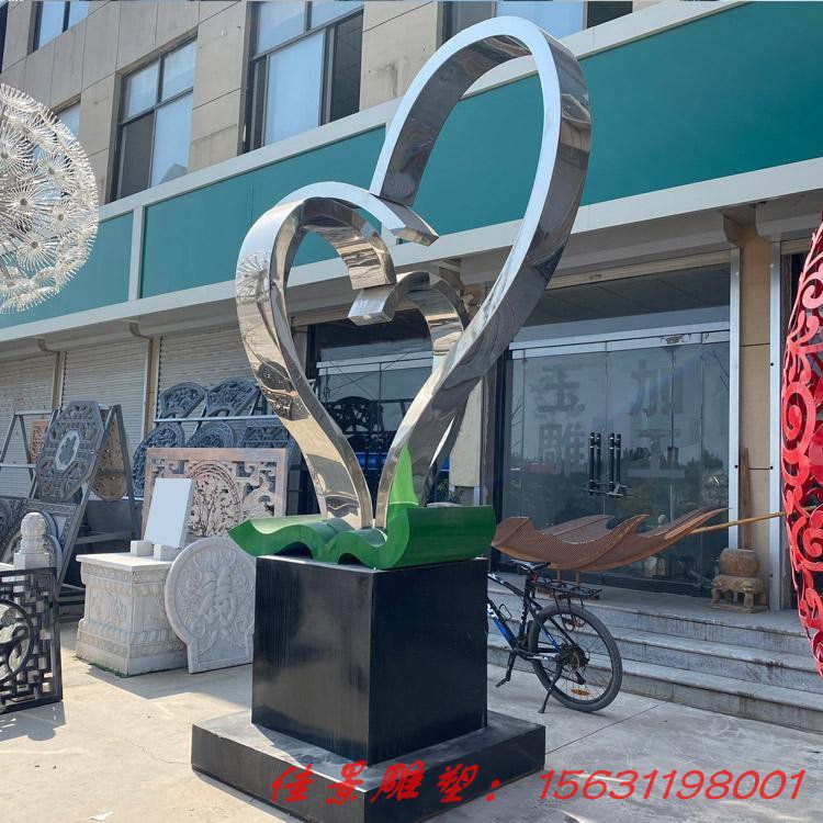 不锈钢仁爱心形雕塑可用材质不仅局限于304,还可以是201等,所使用的工艺也不只是喷漆,还可以是喷镀、烤漆、拉丝、镜面等,尺寸和适用场所也非固定不变。