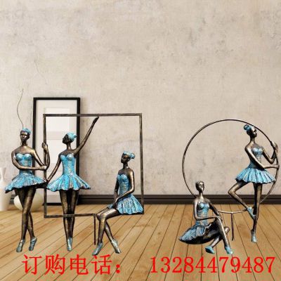 铸铜人物跳芭蕾舞雕塑