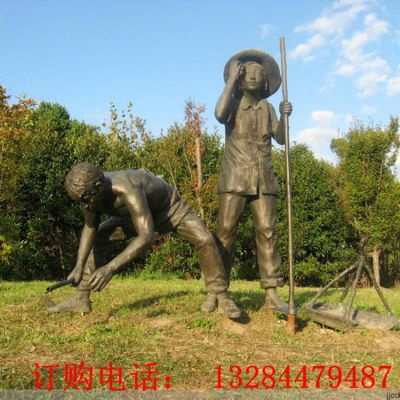 农耕文化播种人物铸铜雕塑