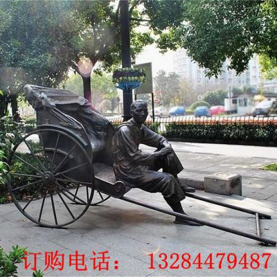 拉黄包车人物铸铜雕塑