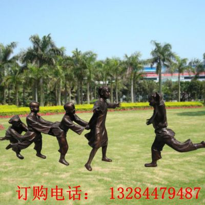 儿童玩老鹰抓小鸡铸铜雕塑