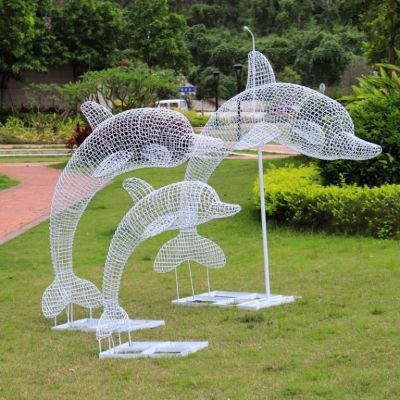 不锈钢海豚动物景观雕塑