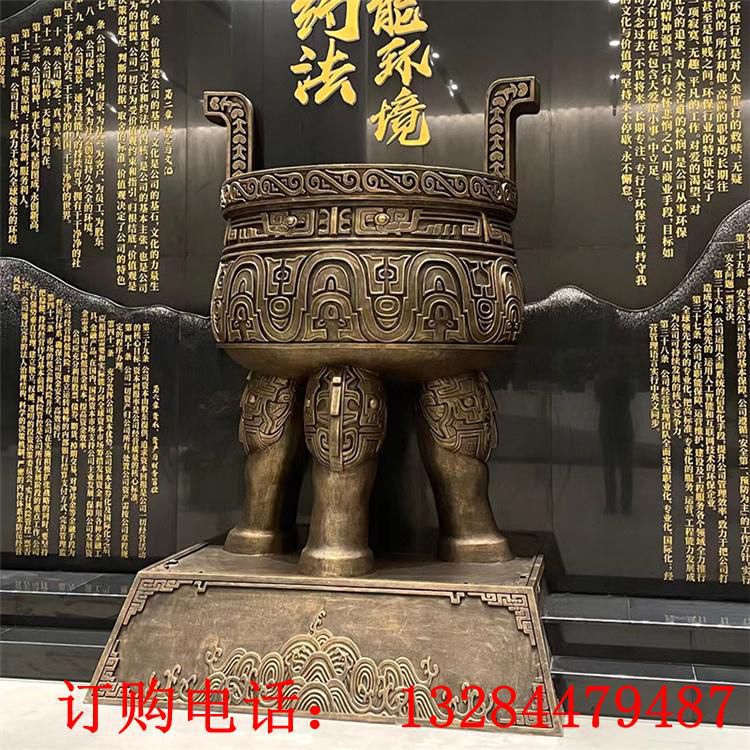 青铜铜鼎雕塑主要选用青铜材质,经过铸造、锻造等工艺的制作,打磨抛光等技术的处理,而终呈现出来的一种雕塑艺术,是中华民族古老铜雕工艺的精彩展现, 鼎自古有可起"藏风聚气"、"辟凶煞"的作用,一般用铜铸造而成。大的铜鼎往往笨重,需要多人才能够抬起,在古代人们喜用它来祭祀。那时候祭祀被视为是大事,而用铜鼎祭祀则证明了鼎在当时的地位。