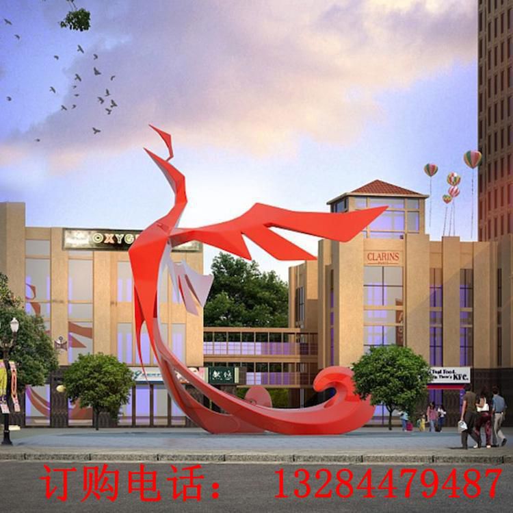 不锈钢抽象凤凰是利用不锈钢制作的产品,采用抛光技术制造而成,抽象凤凰雕塑适用于公园等地方摆放。摆放在公园中,不锈钢公园雕塑可以满足大家丰富多彩的审美要求,能够满足各个阶层对雕塑的关注,而不是一个特别大的标志性的大型艺术品,不会利用强烈的视觉冲击来搅动整个城市的景观,引起视觉的冲击。抽象凤凰,所采用的工艺也不只是抛光,还可以是喷镀、烤漆、喷漆、拉丝、镜面等,尺寸和应用的场所也不是始终不变。不锈钢凤凰雕塑取材于凤凰,采用高度概括的手法,运用其高雅、华贵、圣洁而柔美的特点,取其细身长足、尖小伶俐之喙部,尤其是那鲜艳至极无与伦比的尾部令人赞叹。