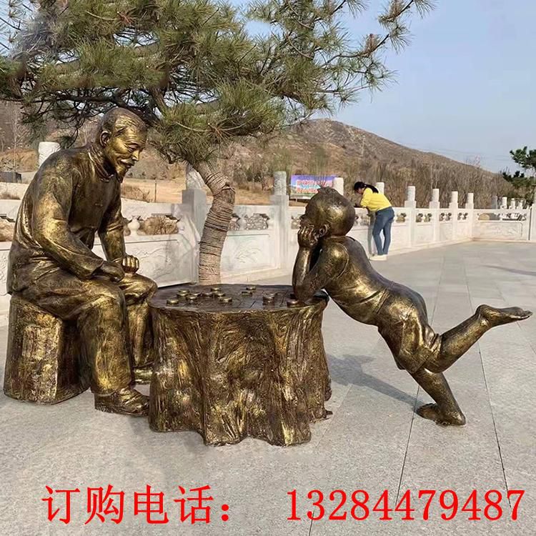 人物雕塑在中国的历史悠久,从中国的春秋战国时期就开始出现,而在商周时期又得到了进一步的发展,从而使人物雕塑更加繁荣的发展着,而人物雕塑自出现之后就得到了良好的发展,并且没有因为时代的变更和国家的更替而中断,人物雕塑在我国经过艰难的发展,现在如春笋一般的开始出现在了各大城市中。目前,城市中的雕塑以人物为主,因此,人物雕塑在城市中所占的比例最大,在城市的很多场所都能够见到,而公园作为城市中非常盛行的一个场所,起初公园中的雕塑几乎都是石桌石凳,但是随着人物雕塑在城市中的较好发展,而公园中也逐渐的出现了人物雕塑。公园中的人物雕塑以铜雕为主,几乎都是铜材的,具有着浓厚的时代艺术气息,并且,这些人物雕塑很多都是民俗人物的,其中,下棋造型的就是非常常见的一种,已经在很多公园中摆放起来,并受到了人们的欢迎。