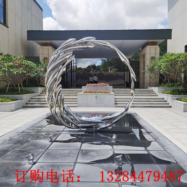 不锈钢圆环雕塑可以说题材丰富,造型多变,外观时尚大气美观,就寓意来说也相当的不错,圆形圆环雕塑寓意圆满幸福,圆环加上鹿,鹿自古有富贵,平安,权利的象征;圆形加上发财树有生意兴隆发财之意;圆环加上鱼有年年有余富裕之意。可见不同的动物或植物或人物与圆形圆环结合都有不同的美好寓意。