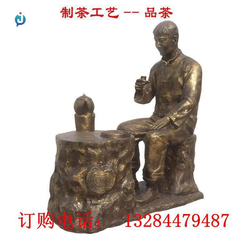 制茶雕塑就是展示制茶过程的雕塑,同时也展现了中国传统的制茶工艺,我们制作的这组雕塑共分8组,每组都代表了一个制茶工艺,包括采青、炒青、揉捻等等。这种茶文化主题雕塑非常适合放在茶园、茶叶公司等场所。