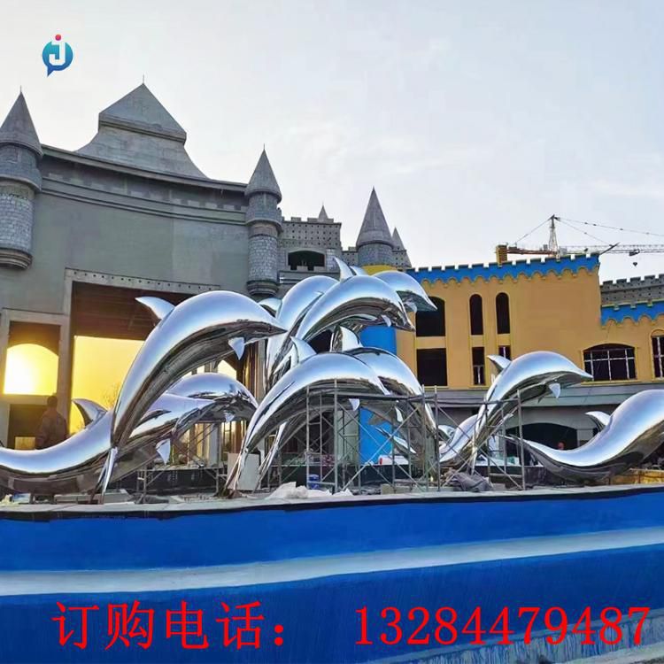 不锈钢镜面海豚雕塑。因为,海豚喜爱跃出水面飞向空中,而且这个时候,海豚那完美的流线的体型得以非常好的展现,所以,不锈钢海豚的造型通常采用其跃出水面的的形态,其长长尖尖嘴巴和流线一般修长匀称的身体构成了一座美丽的雕塑。镜面不锈钢海豚雕塑是金属雕塑中明亮鲜艳的雕塑作品。是城市中一个明亮的风景,随着社会的进步越来越多的不锈钢雕塑出现在了街头、公园等地,给人们的生活增添了很多乐趣,也增加了整个城市的艺术气息。