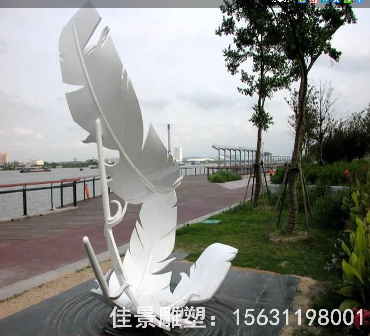 不锈钢羽毛雕塑还具有良好的环保性能,它不会对空气及水源造成污染,同时也不会受到外界环境的影响,如果外部环境很恶劣,它也不会受到磨损。这是它最为人们喜爱的原因之一,特别是在公共场合。