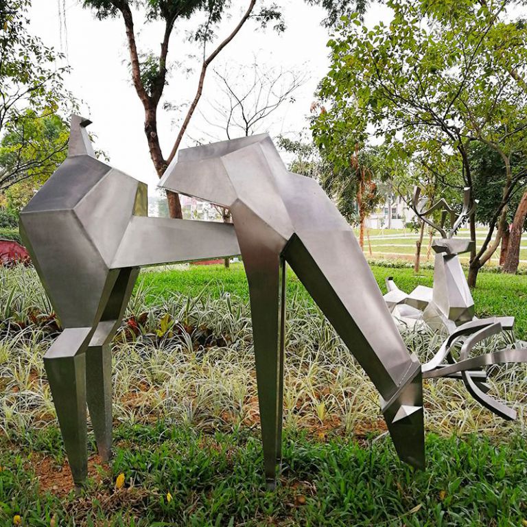 优雅而舒适的不锈钢鹿雕塑:实现优雅审美情趣