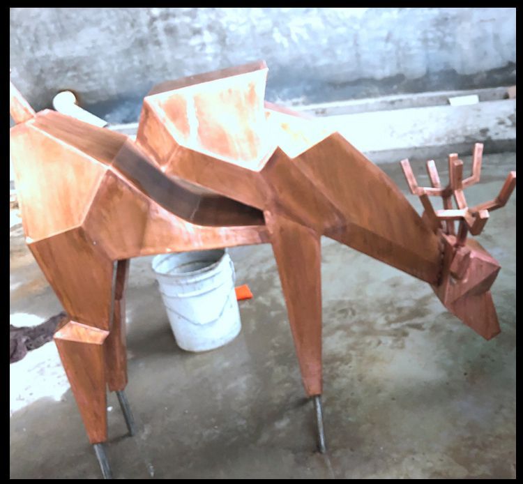 城市低头鹿动物铜雕