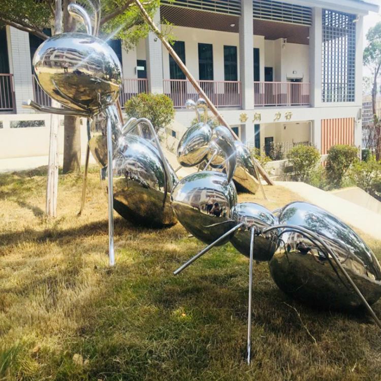 不锈钢镜面蚂蚁动物标志雕塑