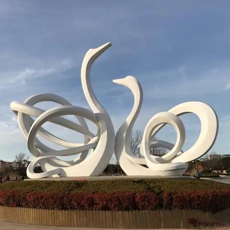 不锈钢白色天鹅雕塑