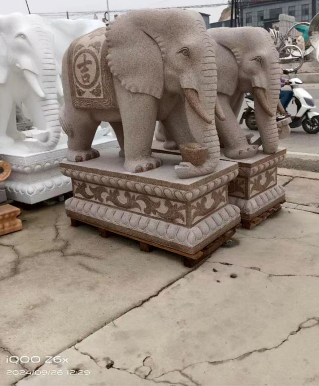 在中国文化中,大象也被视为吉祥之物。大象象征着力量、稳重和吉祥如意。在古代,大象常被用于皇家仪仗和重要的庆典活动。大象雕塑在中国传统建筑中也较为常见,如宫殿、寺庙等,它们通常被放置在门口或庭院中,起到镇宅辟邪的作用。中国的大象雕塑注重形态的优美和气势的宏大,常常采用石材或铜材制作。