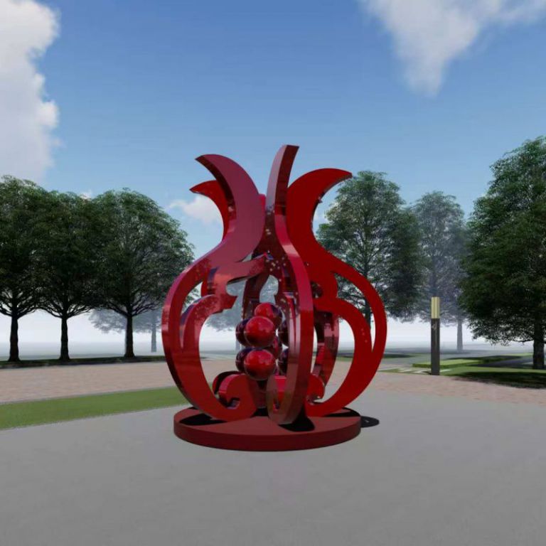 - 不锈钢锻造的石榴,突破材质的固有印象。其流畅的线条模拟着石榴自然生长的曲线,抛光后的表面映射着周围的光影与景致,仿佛一颗拥有 “魔法” 的石榴,吸纳着世间万物,又将美好与希望以艺术的形式传递给每一位驻足观赏的人 。